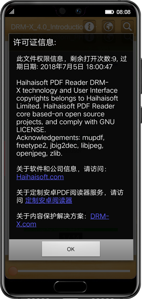 智能手机市场仍然在全球快速成长,Android因为开放系统,功能强大,在手机市场中占有主导地位。Android手机和移动设备有着巨大的商业市场。海海软件DRM-X 3.0将会为内容提供商进一步带来更多的Android设备的客户群,并确保内容提供商的PDF内容安全分发至Android手机或便携式设备上,最终用户可以随时随地观看加密后的PDF文档,满足用户的实时观看需求。
