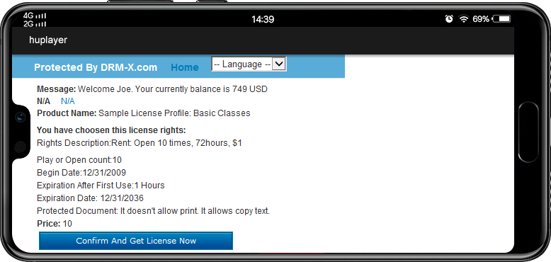 集成后,可以实现用户在您原有的App登录。在播放时只需要通过调用定制后的播放器,传递需要的参数,例如,在线播放或者本地播放的地址,加密的会员登录信息,然后自动在线获取许可证,进行播放。播放器风格可以和您的App统一,在保护视频版权的同时,用户仍然可以感到是在您的App中完成播放和自动获取许可证,从而给客户提供完美的用户体验。